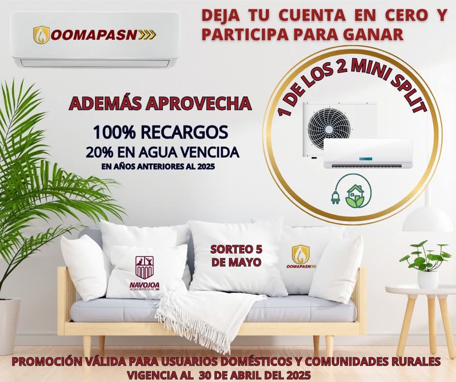 * Participa para ganar uno de los 2 minisplits que Oomapas Navojoa tiene para ti, sólo tienes que dejar tú cuenta en ceros.