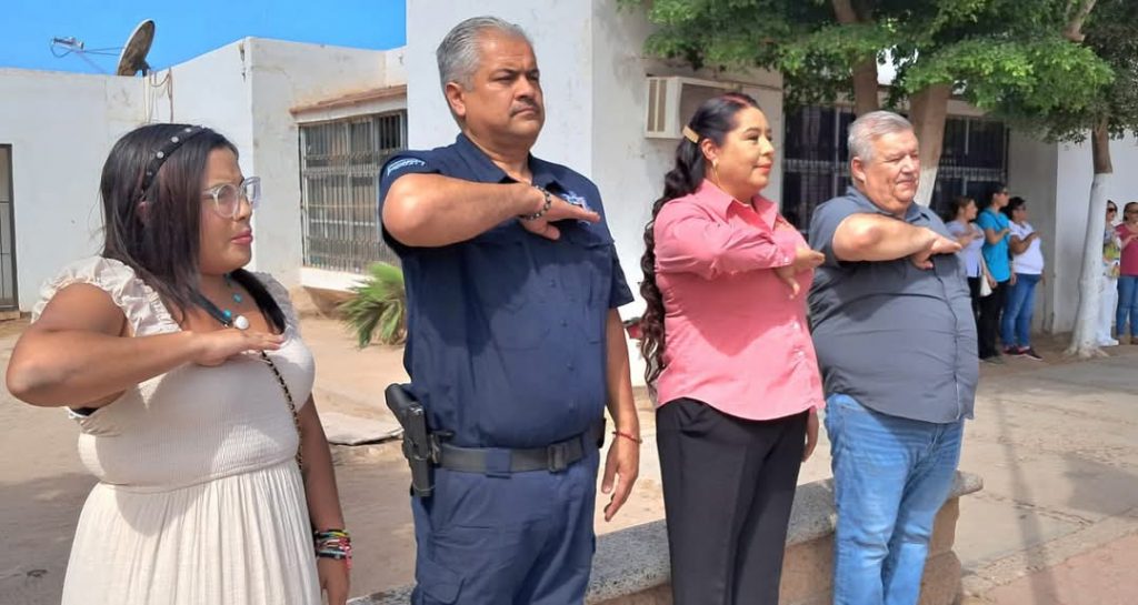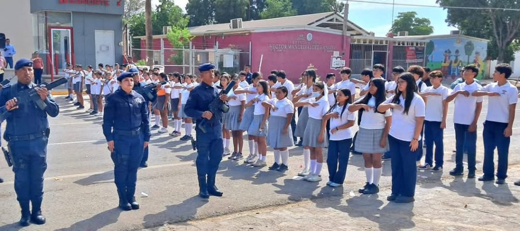 Presentes las Regidoras, Mayra Doré Jocobi Valdez , Ana Lilia Cordova Herrera, Ramona Mancillas Borbón, el Secretario, Héctor Adolfo Quiroz Corral, el Comisario de Seguridad Pública, Pedro Valenzuela Villegas, Directores, estudiantes y familias.