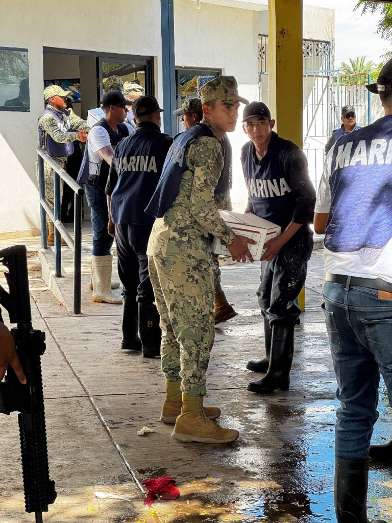 La Marina llega a Huatabampo para apoyar a damnificados por la Tormenta Lorena.