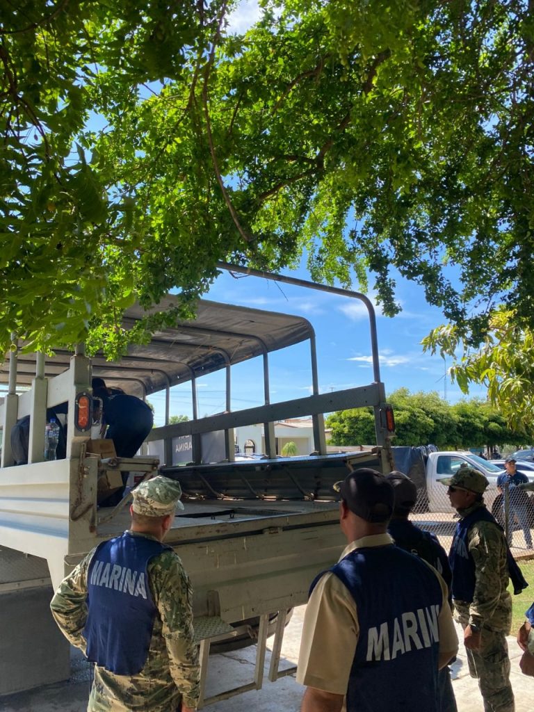 Huatabampo, Sonora; 06 de septiembre de 2025.- Elementos de la Secretaría de Marina (Semar) arribaron al municipio de Huatabampo para sumarse a los esfuerzos del Gobierno Municipal en la atención de las comunidades afectadas por las recientes inundaciones provocadas por la Tormenta Tropical Lorena.