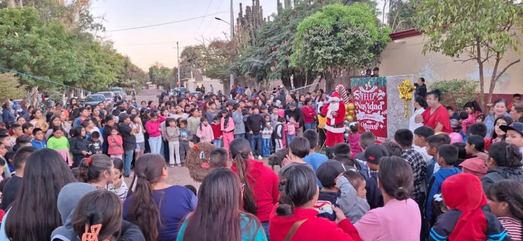 Etchojoa, Son.- Gran Posada Navideña disfrutaron niñas y niños de las Comisarías de San Pedro y La Bocana, quienes disfrutaron de dulces, pastel, juguetes, coordinado por el sistema DIF de Etchojoa.