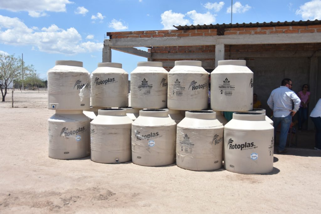 Navojoa, Sonora, 5 de julio 2024.- Tinacos para almacenamiento de agua potable, entregó hoy el alcalde Jorge Alberto Elías Retes a familias de Teachive y otras comunidades rurales de la comisaría de Masiaca, quienes pronto tendrán el beneficio de la activación de un nuevo pozo para el abastecimiento.