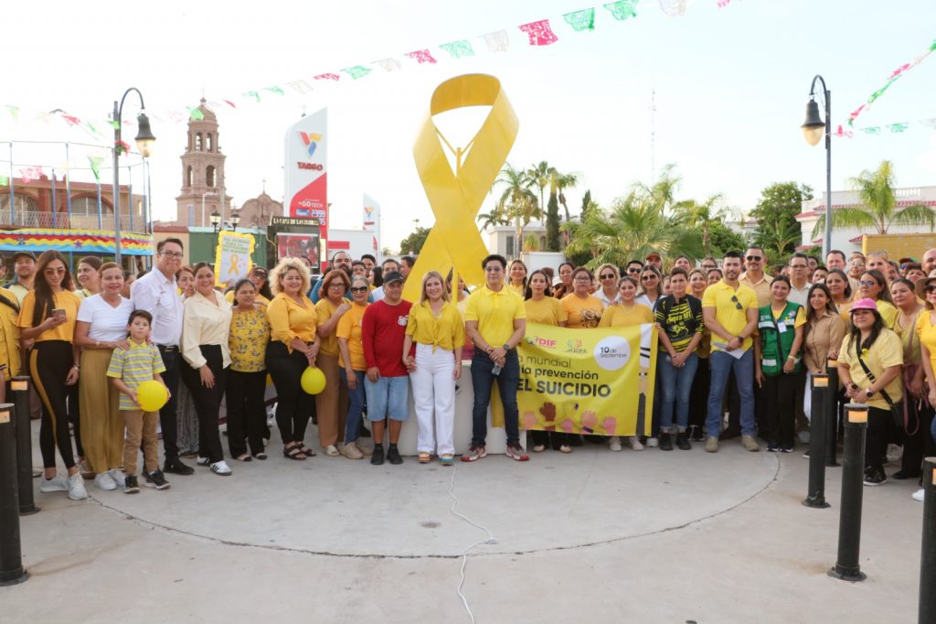 Navojoa, Sonora, 10 de septiembre 2025.- A convertirse en promotores de esperanza, en hombro solidario y escuchar sin herir a quien se encuentra en situación de desaliento, invitó hoy a los navojoenses la presidenta del DIF, Luz Argel Gaxiola de Elías, al presidir junto a regidores y autoridades de Salud la marcha por el Día Mundial para la Prevención del Suicidio.