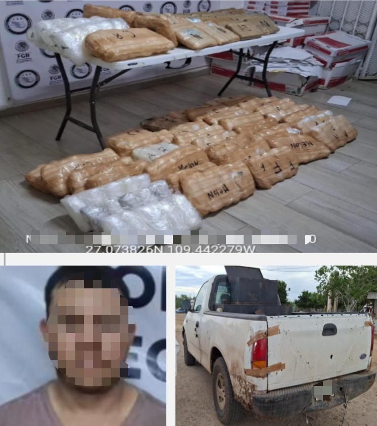 De forma conjunta, elementos del Ejército Mexicano, la Guardia Nacional, la Secretaría de Marina, la Policía Estatal de Seguridad Pública (PESP), y la Agencia Ministerial de Investigación Criminal (AMIC), lograron la detención de Luis Ángel ‘N’, en posesión de un significativo cargamento de narcóticos en la carretera México 15, tramo Los Mochis–Navojoa, a la altura del kilómetro 93+100, en el municipio de Huatabampo.