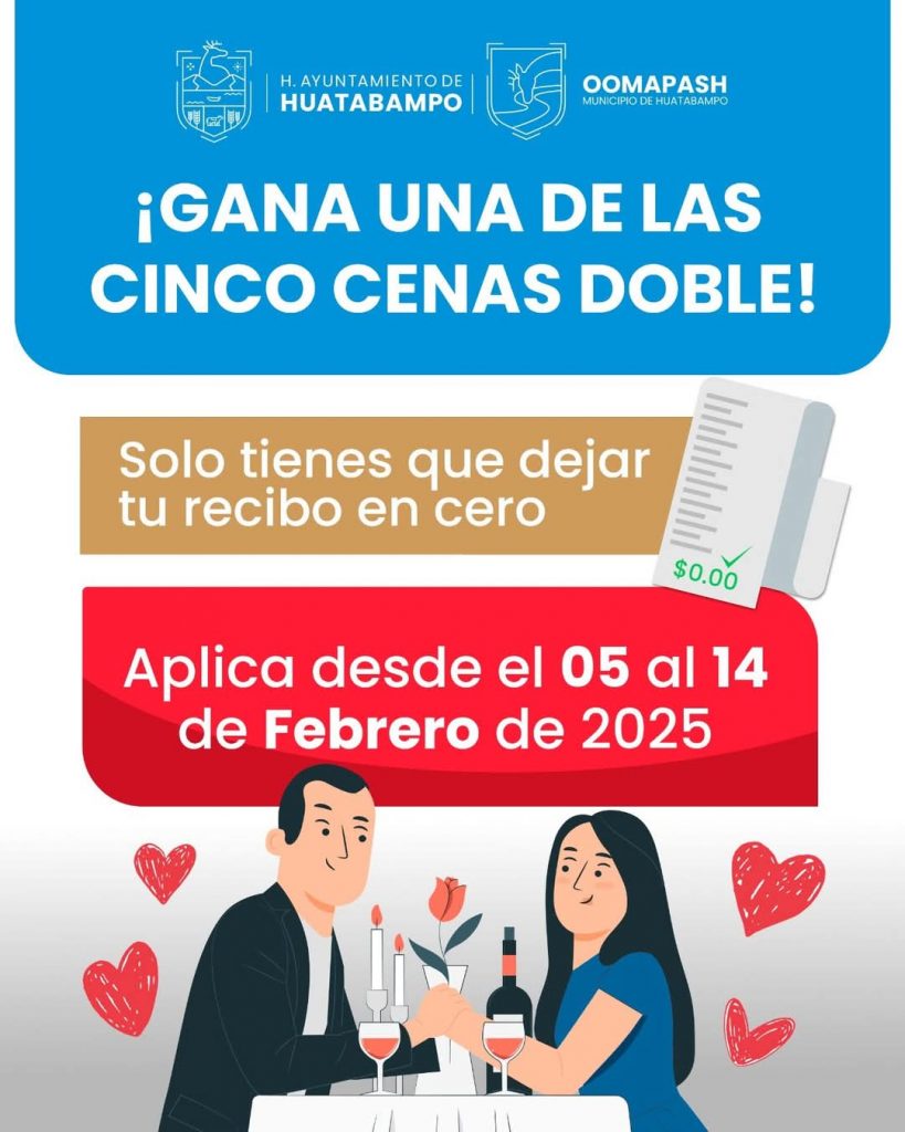 Amigo huatabampense, ¡Gana una de las 5 cenas dobles que sorteara #OOMAPASH! 🍽️