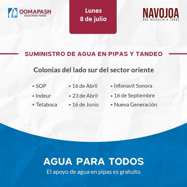 NAVOJOA PRINCIPAL Oomapas Navojoa Informa del área a distribuir el agua mediante tandeo y pipas. Administrador julio 8, 2024 0 Atención usuarios del lado sur del sector oriente de la ciudad. Comparte esto: Haz clic para compartir en Facebook (Se abre en una ventana nueva) Facebook Click to share on X (Se abre en una ventana nueva) X Haz clic para compartir en WhatsApp (Se abre en una ventana nueva) WhatsApp Me gusta esto:Me gusta Cargando... Post navigation Previous: CIERRAN GOBERNADOR DURAZO, PRESIDENTE LÓPEZ OBRADOR Y PRESIDENTA ELECTA SHEINBAUM GIRA POR SONORA CON RESTITUCIÓN HISTÓRICA AL PUEBLO YAQUINext: BASURA EN EL DRENAJE AFECTA FUNCIONAMIENTO DE CÁRCAMOS. Más historias ETCHOJOA PRINCIPAL COE de Etchojoa mantiene vigilancia ante lluvias por tormenta tropical “Raymond” Administrador octubre 10, 2025 0 ESTATAL HUATABAMPO PRINCIPAL Se prepara el Gobierno de Huatabampo para recibir a la Tormenta Tropical “Raymond”. Administrador octubre 10, 2025 0 DEPORTE ETCHOJOA PRINCIPAL EBE de Etchojoa se corona campeón de la Liga de Básquetbol ADEMEBA 🏀🏆 Administrador octubre 10, 2025 0 Deja un comentario Cancelar respuestaTu dirección de correo electrónico no será publicada. Los campos obligatorios están marcados con *Comentario * Nombre * Correo electrónico * Web Guardar mi nombre, correo electrónico y sitio web en este navegador para la próxima vez que haga un comentario.