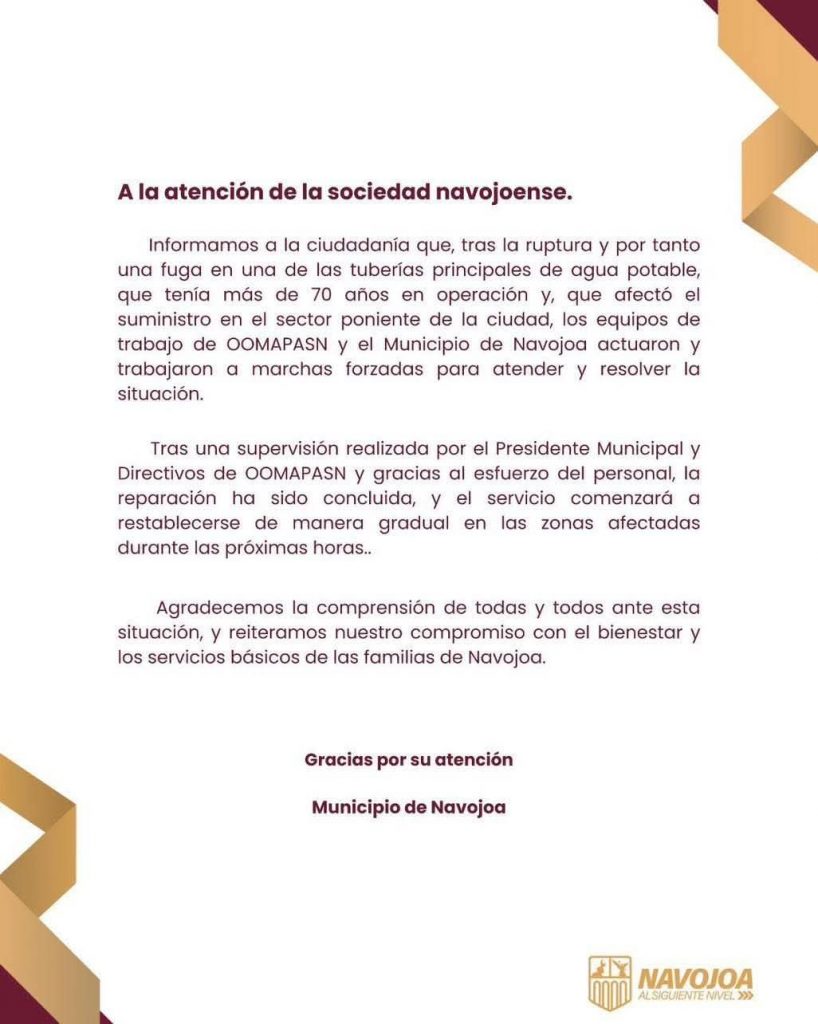 NAVOJOA PRINCIPAL Oomapas Navojoa RESTABLECE SERVICIO EN SECTOR PONIENTE. Administrador mayo 13, 2025 0 Comparte esto: Haz clic para compartir en Facebook (Se abre en una ventana nueva) Facebook Click to share on X (Se abre en una ventana nueva) X Haz clic para compartir en WhatsApp (Se abre en una ventana nueva) WhatsApp Me gusta esto:Me gusta Cargando... Post navigation Previous: GOBERNADOR DURAZO TRANSFORMA CENTRO DE HERMOSILLO CON OBRAS HISTÓRICAS DE MODERNIZACIÓNNext: ATENCIÓN AMIGOS DE BACAME. Más historias ETCHOJOA PRINCIPAL COE de Etchojoa mantiene vigilancia ante lluvias por tormenta tropical “Raymond” Administrador octubre 10, 2025 0 ESTATAL HUATABAMPO PRINCIPAL Se prepara el Gobierno de Huatabampo para recibir a la Tormenta Tropical “Raymond”. Administrador octubre 10, 2025 0 DEPORTE ETCHOJOA PRINCIPAL EBE de Etchojoa se corona campeón de la Liga de Básquetbol ADEMEBA 🏀🏆 Administrador octubre 10, 2025 0 Deja un comentario Cancelar respuestaTu dirección de correo electrónico no será publicada. Los campos obligatorios están marcados con *Comentario * Nombre * Correo electrónico * Web Guardar mi nombre, correo electrónico y sitio web en este navegador para la próxima vez que haga un comentario.