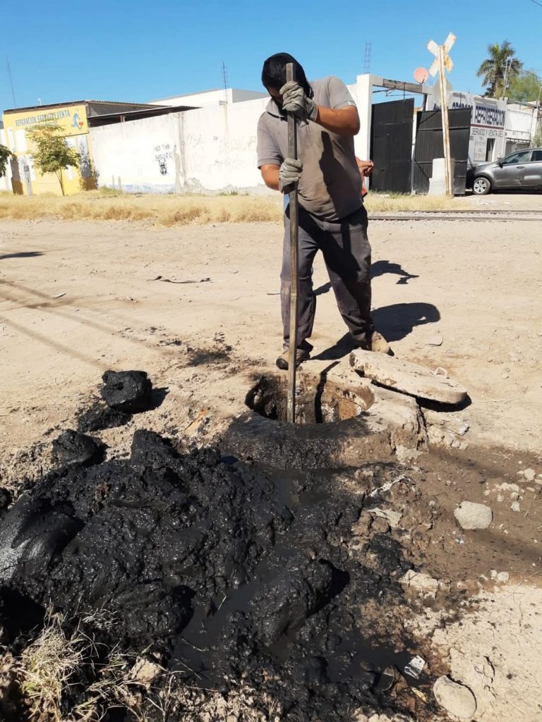 Navojoa, Son.- Con el objetivo de garantizar que nuestras redes de drenaje estén en óptimas condiciones se trabaja en el desazolve y limpieza de pozos de visita en diferentes puntos de la ciudad.