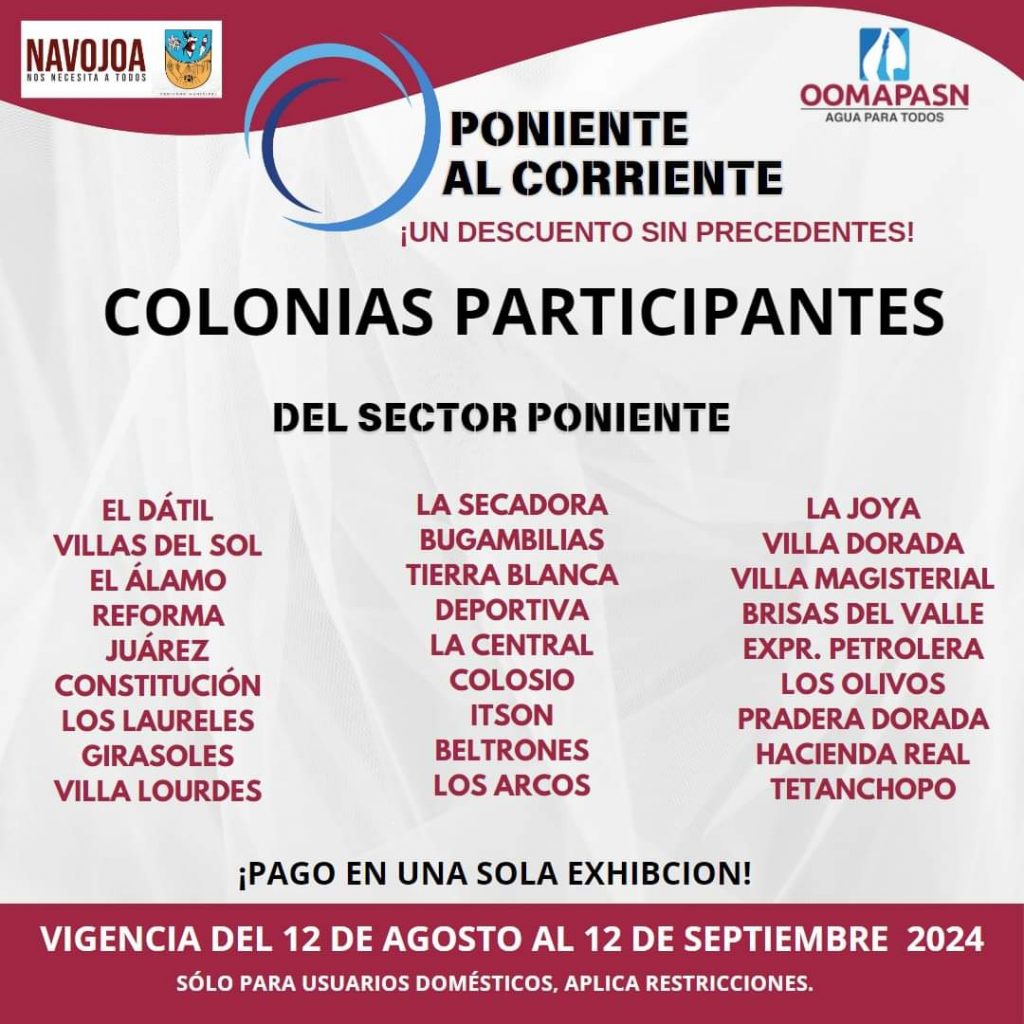 Oomapas Navojoa te invita a aprovechar “PONIENTE AL CORRIENTE”.