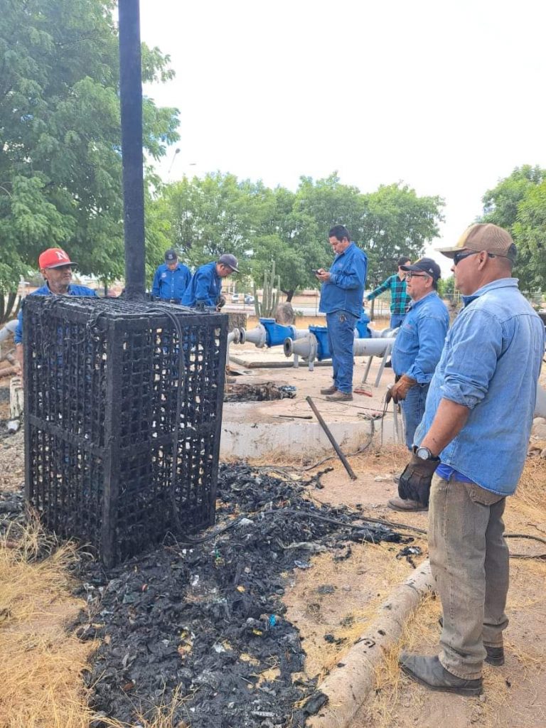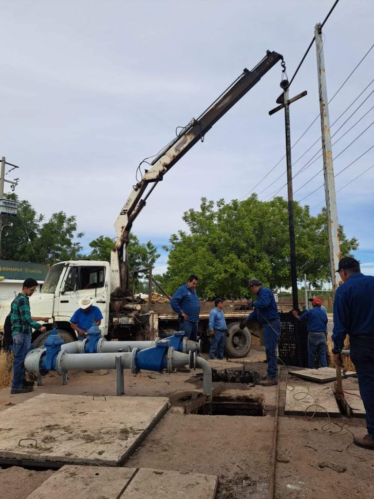 Personal de Oomapas Navojoa dan mantenimiento a cárcamo La Joya.