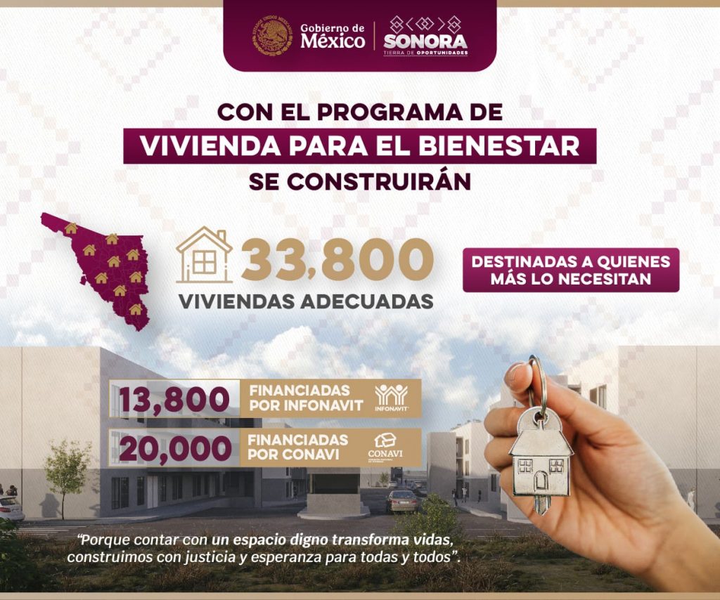 Sonora; 2 de julio de 2025.- El Gobierno del Estado, mediante el programa de Vivienda para el Bienestar que promueve el Gobierno de México, en Sonora construirá 33,800 viviendas destinadas a quienes más lo necesitan.