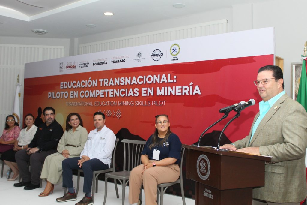 El presidente de la Asociación de Ingenieros de Minas, Metalurgistas y Geólogos de México (AIMMGM) distrito Sonora, ante la presencia de Lorenia Valles Sampedro, presidenta de la comisión de Minería del Senado; Lizzie Tafilipepe, gerente de capacitación de Mining Skills Australia; y Guadalupe González Lizárraga, subsecretaria de Políticas Educativas de la SEC, subrayó que este programa representa el compromiso y la fortaleza del sector minero en Sonora, para aprender, compartir y crecer como agentes de cambio en la formación técnica minera.