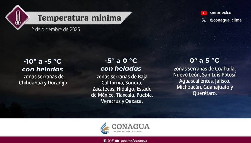 Estas son las y temperaturas mínimas previstas para este martes en algunas entidades. ¡Protégete!