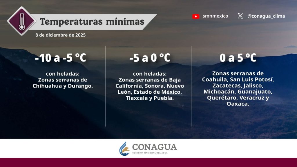¡Protégete del frío! Este es el pronóstico de temperaturas mínimas para el día de hoy, de acuerdo con @conagua_clima: