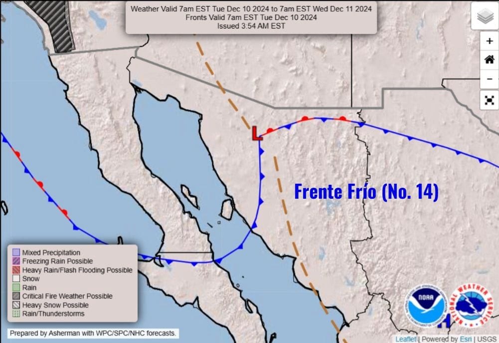 Hermosillo, Sonora.- El Servicio Meteorológico Nacional y diferentes fuentes oficiales de los Estados Unidos, la Coordinación Estatal de Protección Civil emite el siguiente pronóstico: