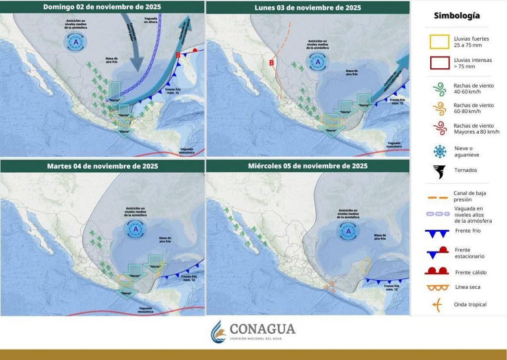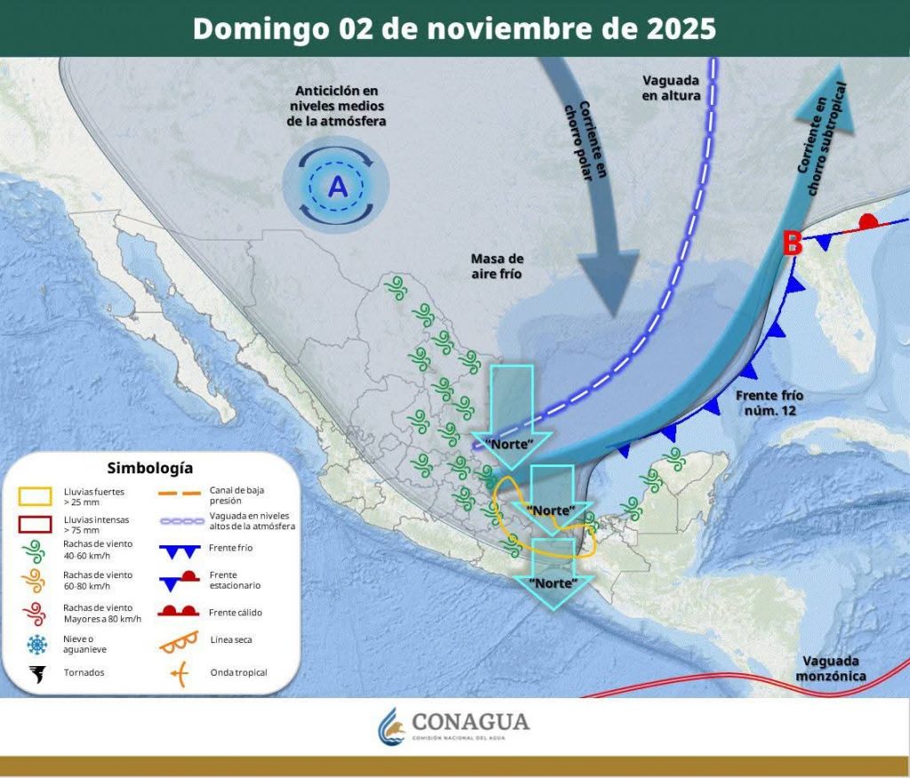 Hermosillo, Sonora a 02 de noviembre de 2025.- Domingo, basándose en la valoración y análisis de la información meteorológica en general y con base en información del Servicio Meteorológico Nacional y diferentes fuentes oficiales de los Estados Unidos, la Coordinación Estatal de Protección Civil emite el siguiente pronóstico: