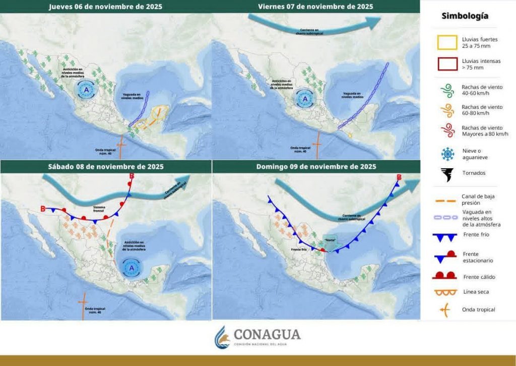 Hermosillo, Sonora a 06 de noviembre de 2025.- Jueves, basándose en la valoración y análisis de la información meteorológica en general y con base en información del Servicio Meteorológico Nacional y diferentes fuentes oficiales de los Estados Unidos, la Coordinación Estatal de Protección Civil emite el siguiente pronóstico: