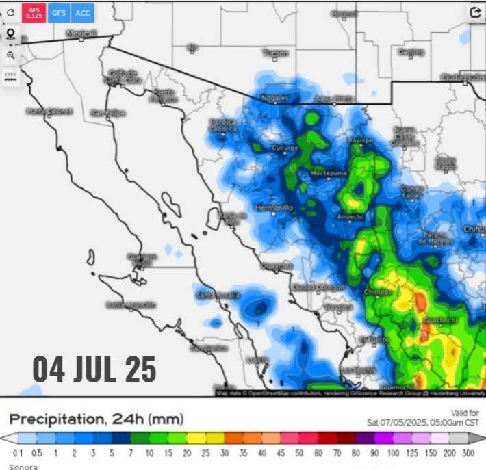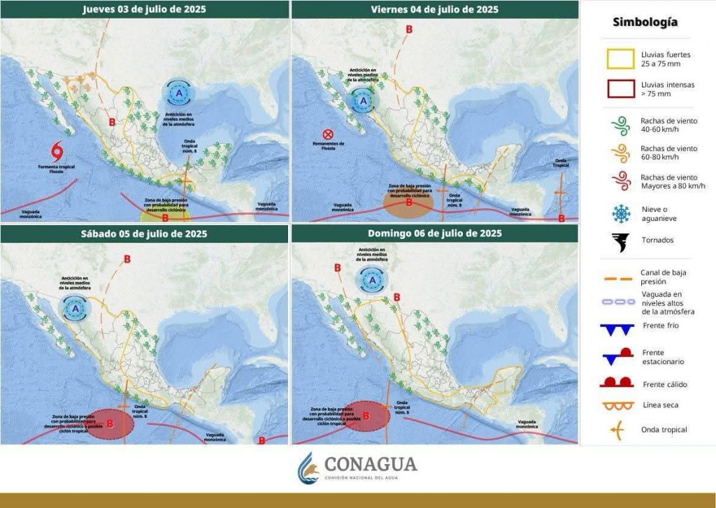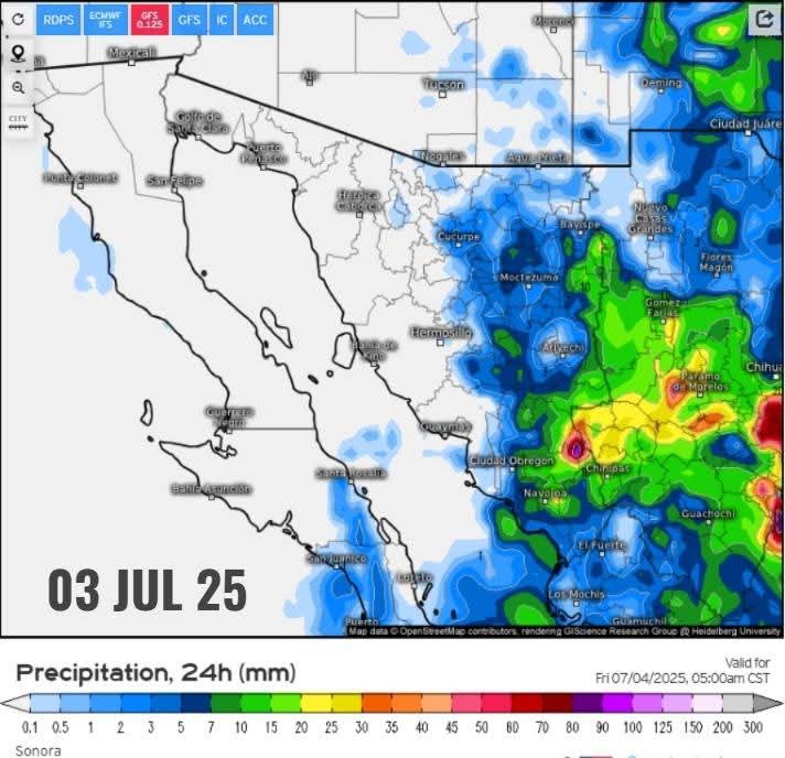 Hermosillo, Sonora a 03 de julio de 2025.- Jueves, basándose en la valoración y análisis de la información meteorológica en general y con base en información del Servicio Meteorológico Nacional y diferentes fuentes oficiales de los Estados Unidos, la Coordinación Estatal de Protección Civil emite el siguiente pronóstico: