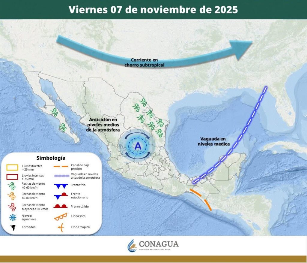 Hermosillo, Sonora a 07 de noviembre de 2025.- Para hoy viernes y basándose en la valoración y análisis de la información meteorológica en general y con base en información del Servicio Meteorológico Nacional y diferentes fuentes oficiales de los Estados Unidos, la Coordinación Estatal de Protección Civil emite el siguiente pronóstico: