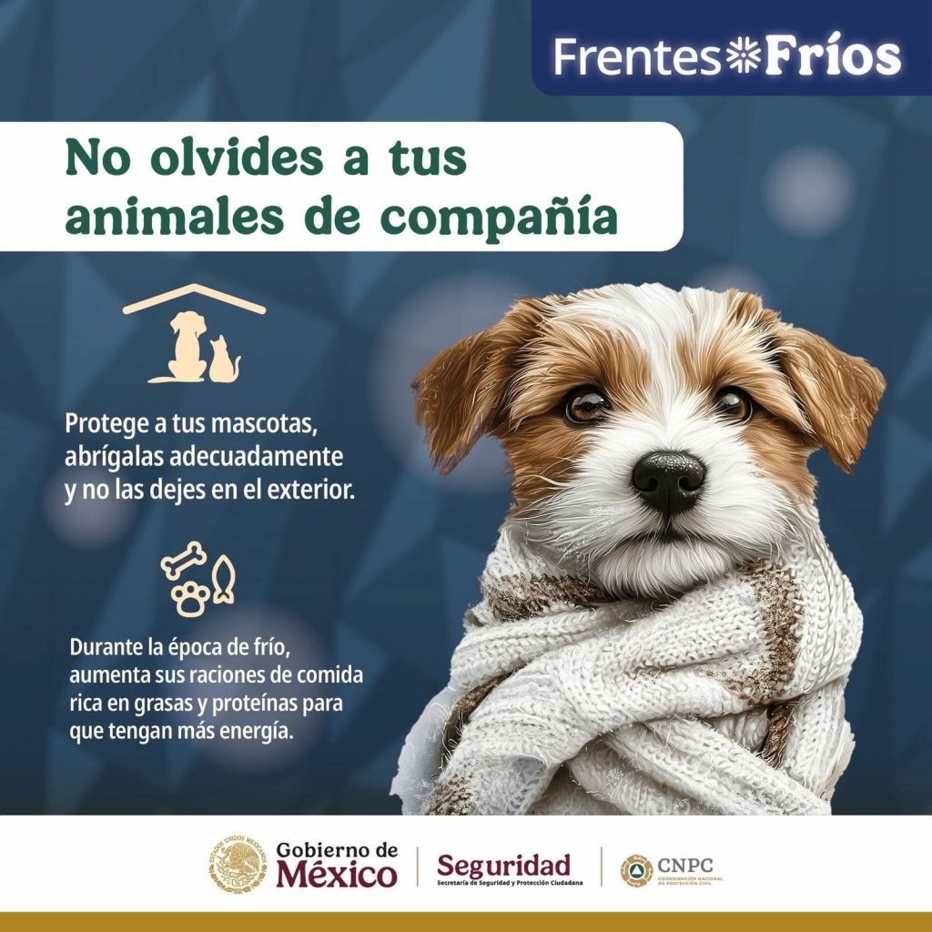 La Coordinación Nacional de Protección Civil te recuerda que con la llegada de los frentes fríos ❄️, también se tiene que cuidar a quienes no pueden abrigarse solos 🐾.