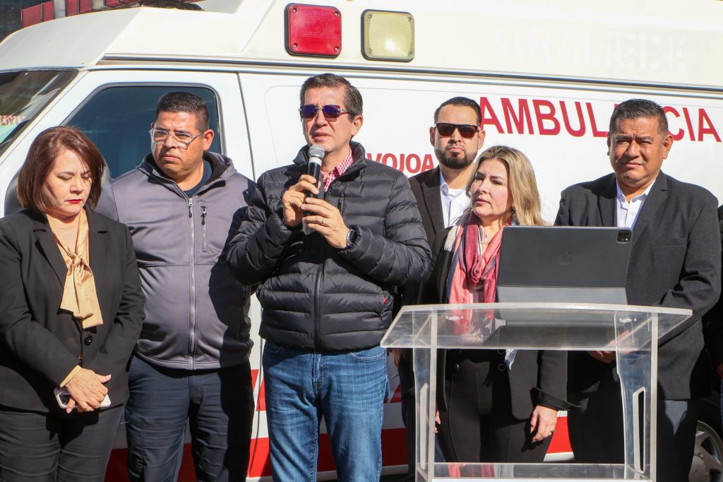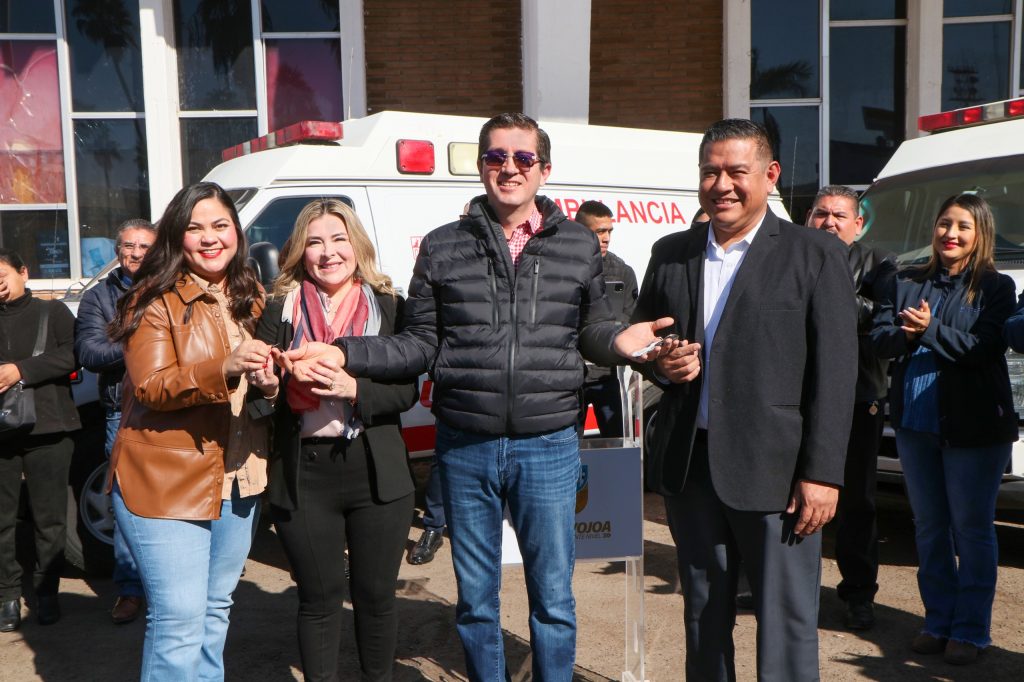 El protocolo de dotación de las tres ambulancias, adquiridas por el ayuntamiento semi nuevas pero con el equipo y herramientas necesarias para emergencias, tuvo lugar al exterior de Palacio con asistencia de la síndica Martha Elena Armenta, el secretario Rafael Sánchez, el comandante de Bomberos, Jesús Edmundo Valdez, regidores y funcionarios municipales.