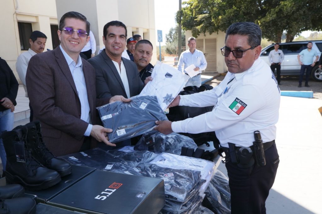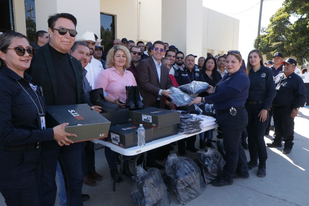 Navojoa, Sonora, 6 de febrero 2025.- Uniformes completos y equipo táctico operativo, entregó hoy el alcalde Jorge Alberto Elías Retes a los agentes de Seguridad Pública y Tránsito Municipal de Navojoa dentro de la estrategia de dignificación a la corporación y mejoramiento en el servicio a los navojoenses.