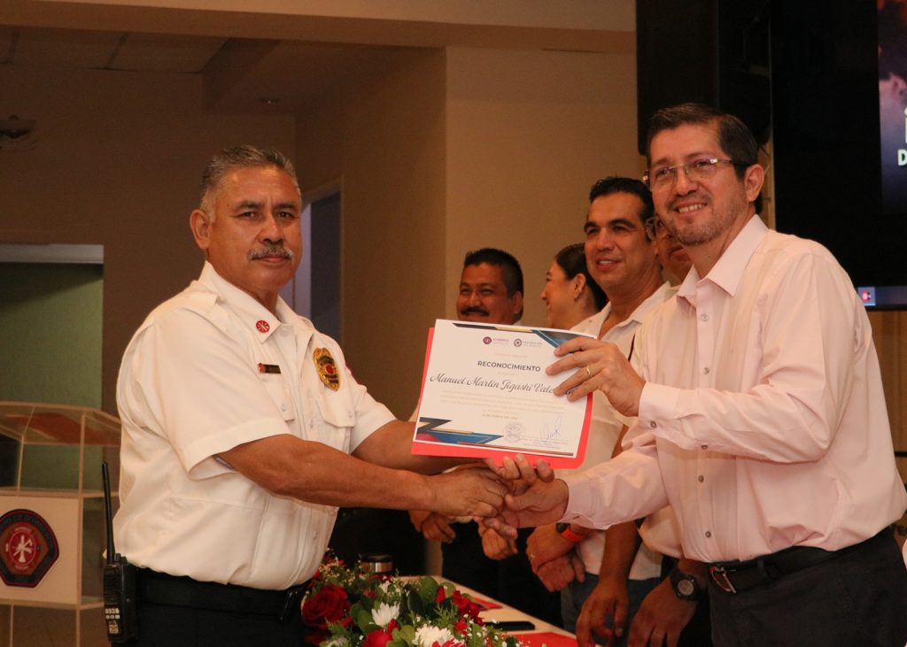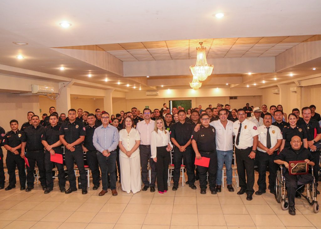 Durante la ceremonia fueron otorgados reconocimientos por antigüedad de 10, 15 y 25 años de servicio, uno especial al comandante Valdez Reyes por su destacada labor al frente del Departamento, emotivamente a un grupo de veteranos, en presencia de regidores, la síndico Martha Elena Armenta, el coordinador operativo, Fredy Luque Chávez, funcionarios y familiares.