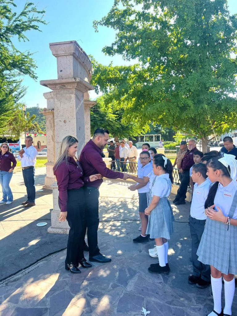 Álamos, Son. 24 de septiembre de 2024.- En un solemne acto cívico, el H. Ayuntamiento de Álamos, presidido por el Profesor Samuel Borbón Lara, en compañía de la Presidenta del DIF Municipal, la maestra Patricia Valenzuela de Borbón, se conmemoró el 159 aniversario de la muerte del General José Antonio de Jesús Rosales. La ceremonia, organizada por de la Dirección de Educación, contó con la participación de la Escuela Primaria Revolución, así como con la presencia de autoridades municipales, la Síndico, Regidores, el Comisario de Seguridad Pública y demás funcionarios.
