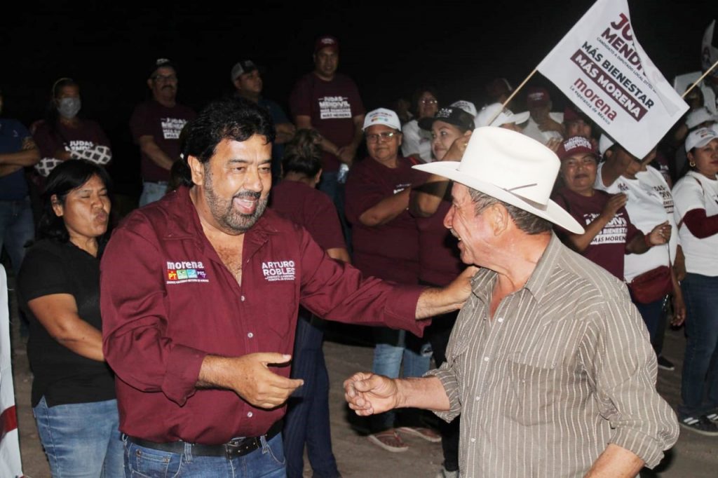 “… Agradezco el recibimiento, me da una gran satisfacción estar aquí, de cara con ustedes, gente bonita que le da identidad a nuestro municipio, vamos a trabajar arduamente para nuestros representados, hay necesidades, pero las vamos resolver, es cuestión de voluntad y de trabajar de la mano con ustedes en cada una de las comunidades… Dijo el abanderado por Morena a la Alcaldía de Etchojoa Arturo Robles.