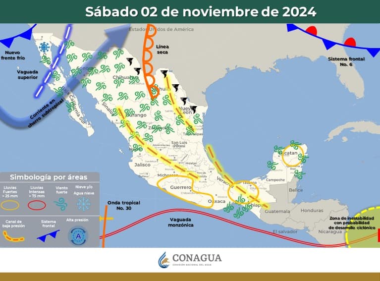 A su vez, un nuevo frente frío estaría aproximándose de nuevo al Estado entre los días 7 y 8 de noviembre. En consecuencia, esta masa de aire polar ocasionará de nuevo una baja en las temperaturas mínimas ya registradas el día lunes y martes pudiendo tener valores todavía más inferiores pudiendo llegar hasta los -5°C en zona montañosa.