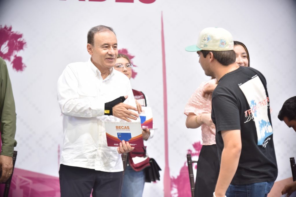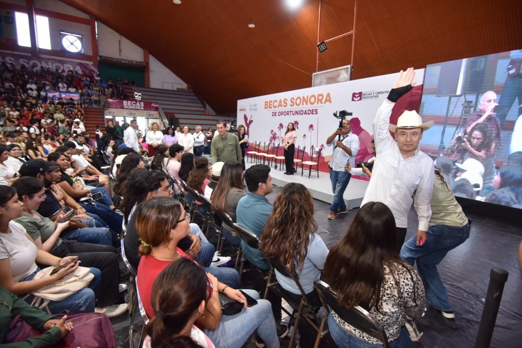 El Gobernador de Sonora, afirmó que la educación es la gran igualadora de las oportunidades y bajo ese convencimiento su gobierno destinará este año 830 millones de pesos para más de 400 mil universitarios, a través del programa de becas instituido ya constitucionalmente como un derecho permanente y pretende como meta cobertura al cien por ciento del alumnado.