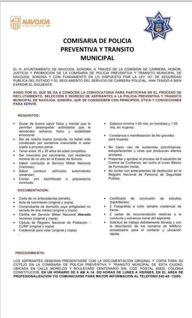 Seguridad Pública y Tránsito Municipal de Navojoa LANZA CONVOCATORIA.