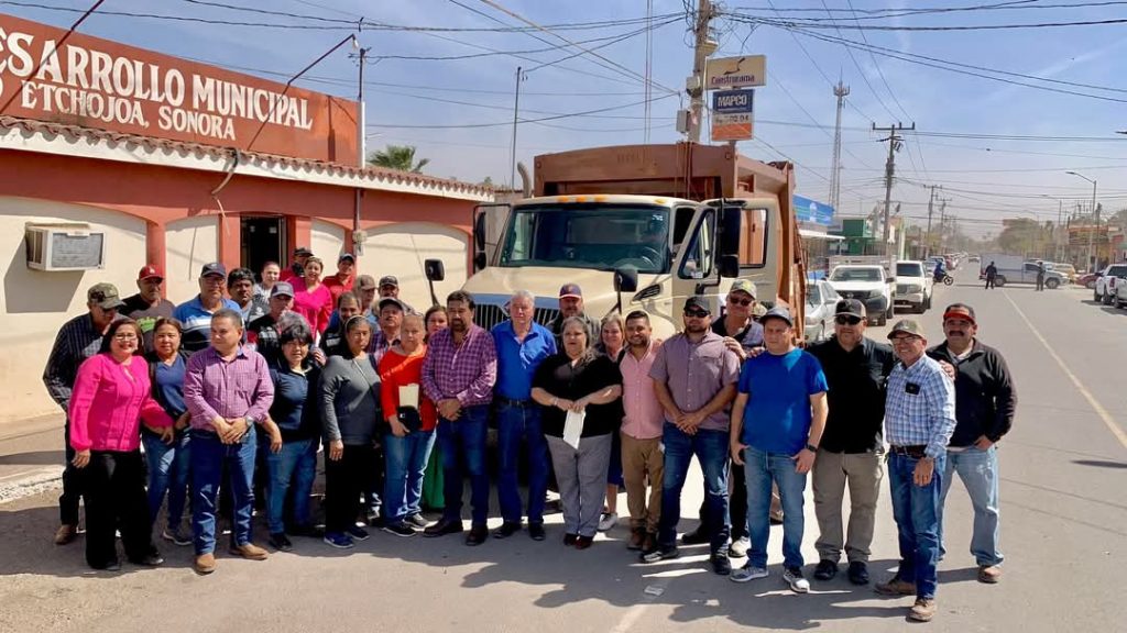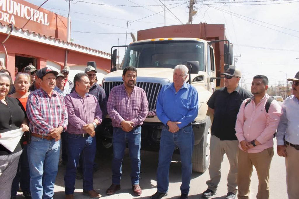 Etchojoa, Son.- Buscando mejorar el Servicio de recolección de basura, el Alcalde de Etchojoa, Luis Arturo Robles  Higuera, hizo entrega de un camión recolector al Comisario de Bacobampo, Armando Alcantar Morales.