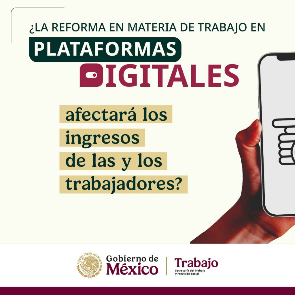 El Gobierno de México y la Secretaría del Trabajo y Previsión Social comunicando que la reforma en materia de trabajo en plataformas digitales no afecta los ingresos de las y los trabajadores 🙅♀️🙅.