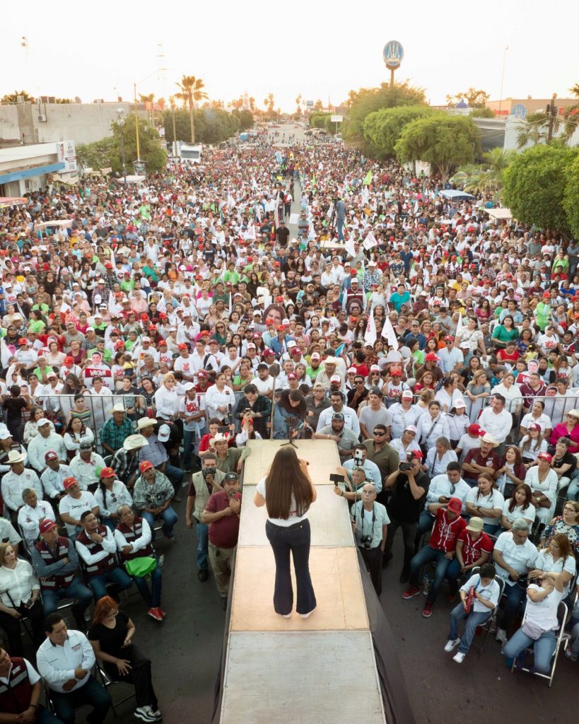 27 de mayo, Navojoa, Son.- “Vamos a ganar contundentemente y vamos a demostrar una vez más que nuestro movimiento, la 4T, tiene mucho que darle a todo el Sur de Sonora y la región del Mayo”, manifestó Celida López, candidata a senadora por el Partido del Trabajo (PT) durante su última gira por el Sur del estado.