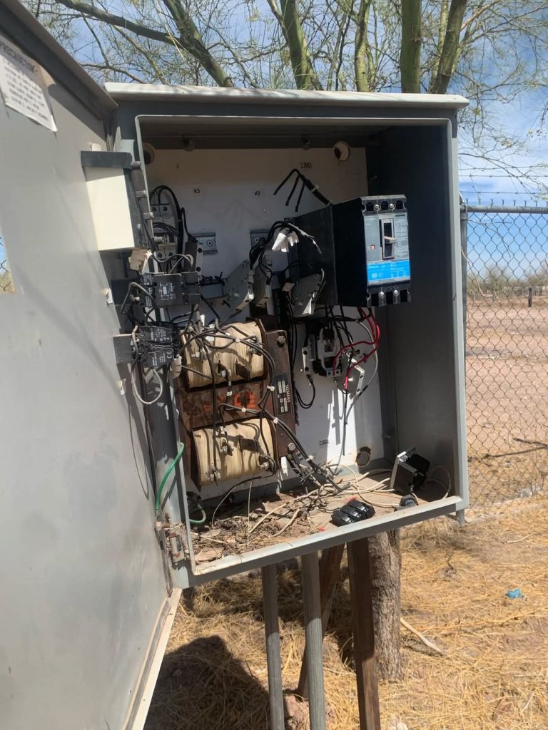 Navojoa, Son.- una vez más, los malvivientes ocasionan daños a la infraestructura eléctrica del pozo ubicado en la Comisaría de PUEBLO MAYO.