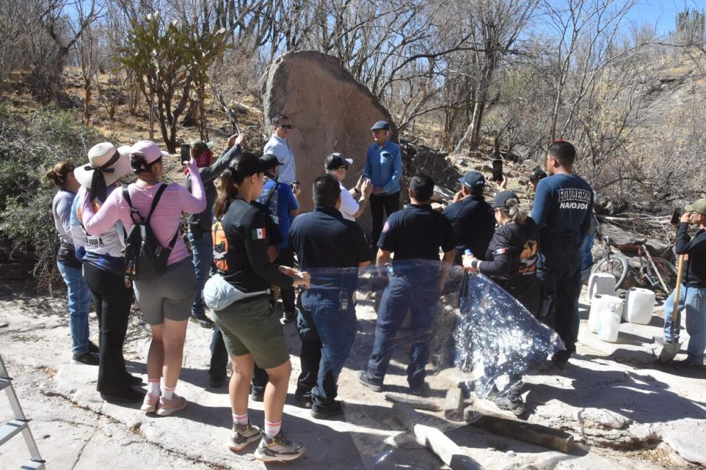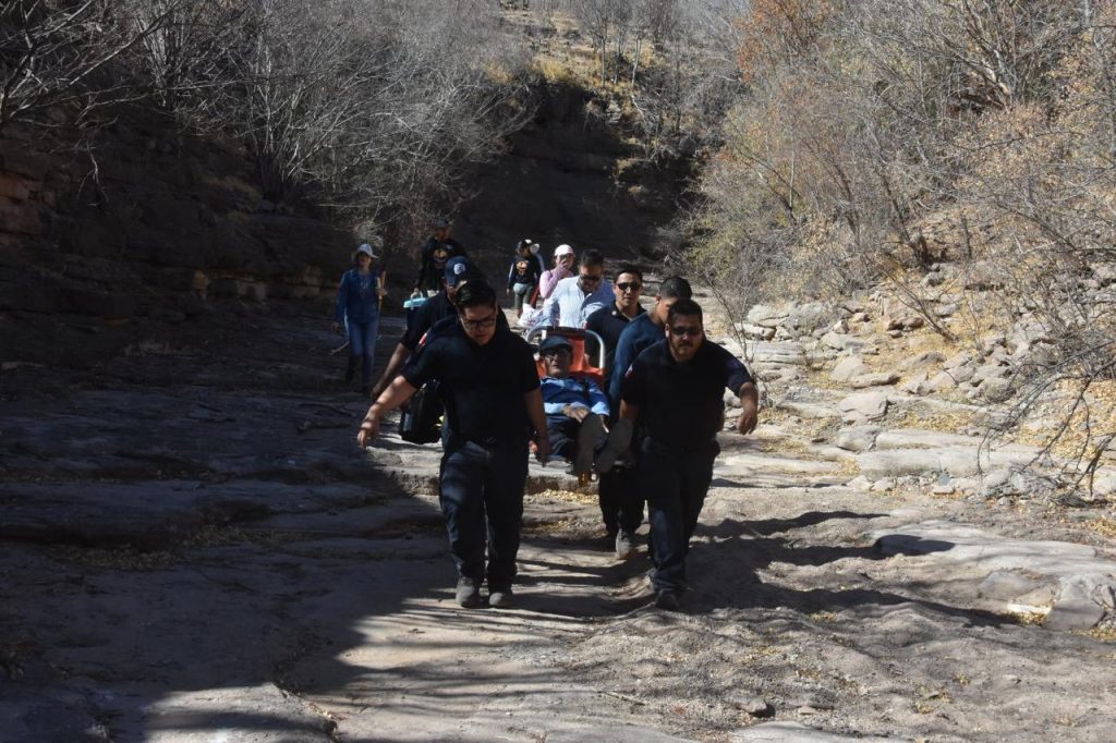 El Honorable Cuerpo de Bomberos de Navojoa tuvo participación clave en las labores que hicieron posible el reencuentro del maestro con la roca, ya que se encargaron de transportarlo en camilla para llegar a su destino en el arroyo.